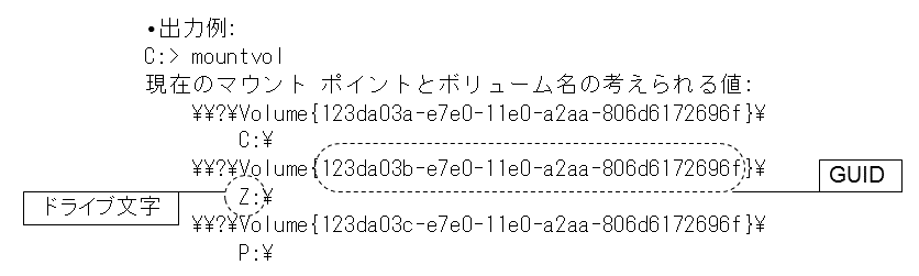 対象サーバ上で以下のコマンドを実行し、ミラーディスクリソースおよびハイブリッドディスクリソースの「ドライブ文字」と「GUID」の組み合わせが、手順3. で確認した内容から変化しているかどうかを確認します。