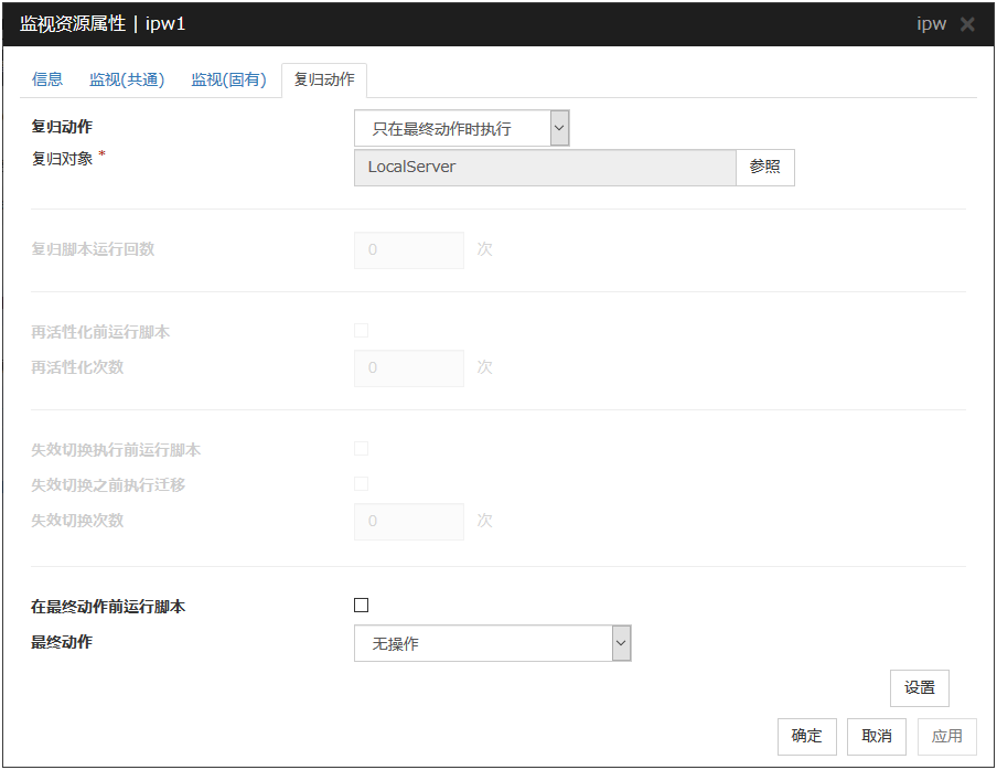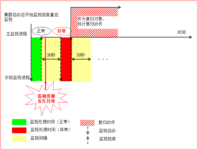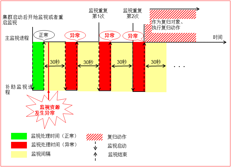 该恢复操作无限重复进行的原因是由于第一次监视轮询正常结束。监视资源恢复操作的当前次数当监视资源处于正常状态时被重置。因此,当前次数总被重置为0,重新激活的恢复操作就会无限重复进行。