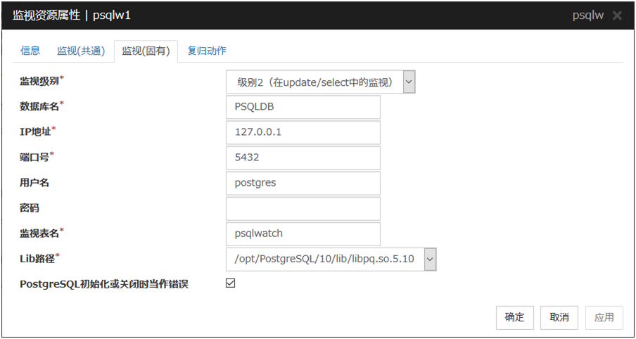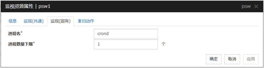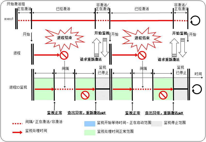 EXPRESSCLUSTER X SingleServerSafe虽无法直接监视应用程序的停止/结果异常,但是可以监视应用程序,在查出异常时能够创建退出自身的程序,通过EXEC资源启动该程序,由PID监视资源进行监视,从而可以让其进行失效切换。