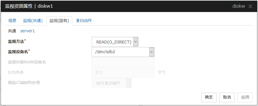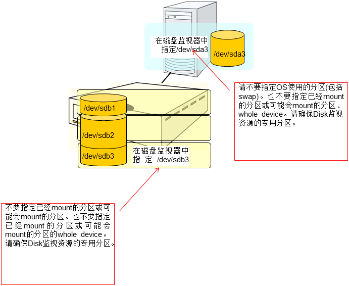 经此确认的RAW设备 1) 请绝勿设置在监视方法非READ (VxVM)的磁盘监视资源中。