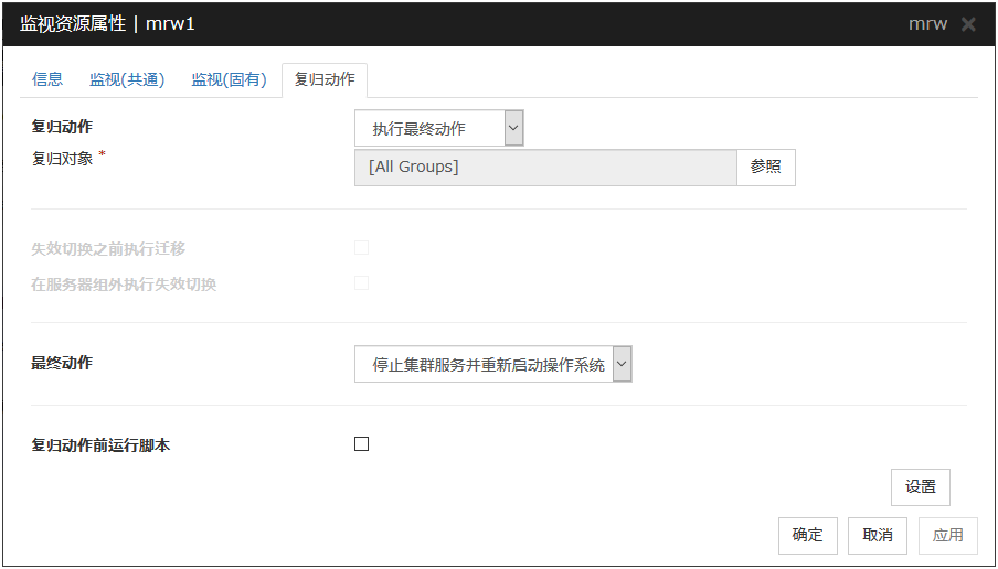 组资源、监视器资源异常被查出时最终操作执行前脚本