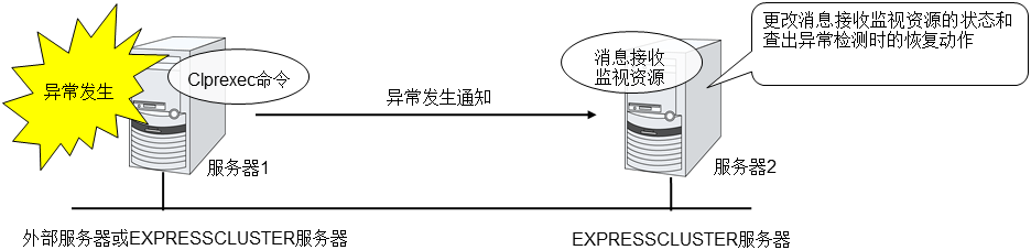 向消息接收监视器资源通知异常时,使用[clprexec] 命令的方法。