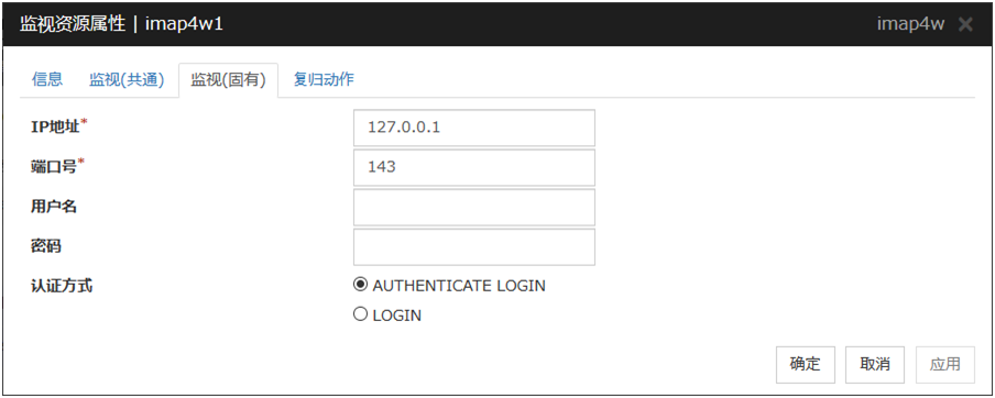 虽然需要另外购买License,但是能够进行数据库应用程序(Oracle,DB2等)、协议(FTP,HTTP等)、应用程序服务器(Websphere、Weblogic等)的停止/结果异常监视。有关详情,请参照"6. 监视资源的详细信息"。