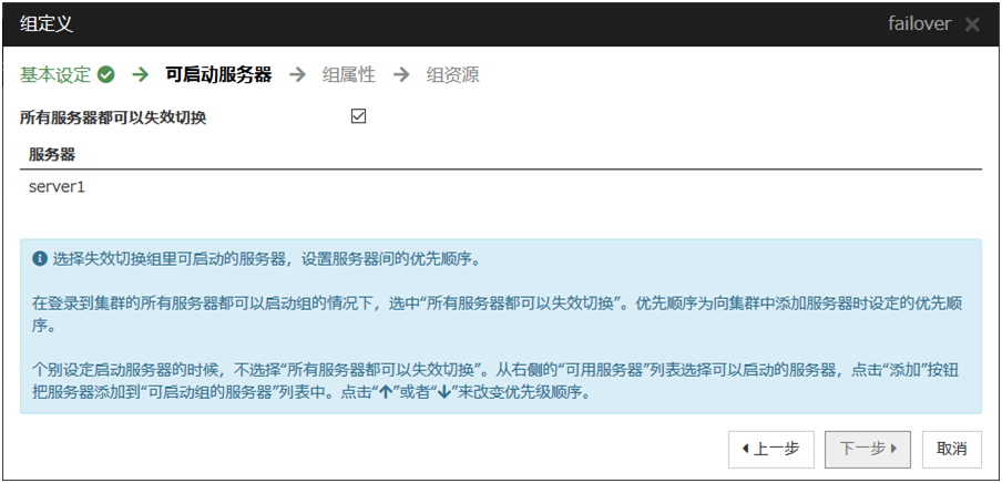 汇集了EXPRESSCLUSTER X SingleServerSafe所使用的组资源(应用程序,服务等)的组