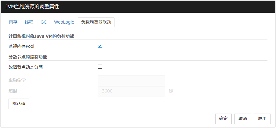 监视目标为WebLogic Server时,对于JVM监视器资源的设定值,由于系统环境(内存搭载量等)的原因,设定范围的上限值可能会受到限制。