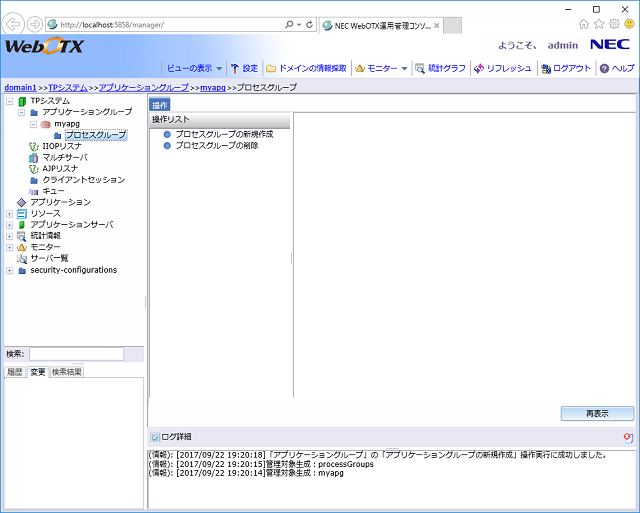 運用管理コンソールを利用して、アプリケーショングループとプロセスグループを作成する手順を説明します。