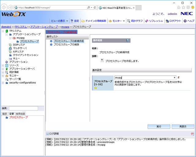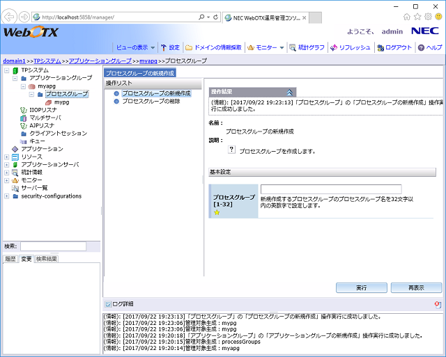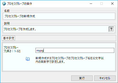 次にプロセスグループを作成します。プロセスグループを作成するには、次に示すオペレーションcreate-pgを実行します。