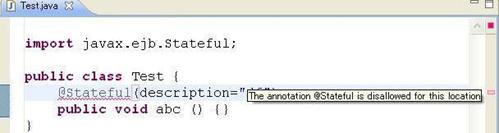 2.アノテーションをTargetとは異なる対象に付与すると、エディタでエラーが発生します。詳しい情報はアノテーションの検証を参照してください。