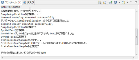 EJBプロジェクトを持つ SampleApplication の起動を、コンソールで確認します。