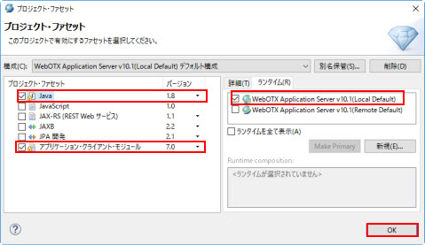 ランタイムリストにWebOTX Application Server v10.1(Local Default)がONの状態を確認ください。