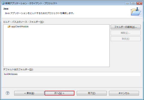 表示されたアプリケーション・クライアント・プロジェクト画面に 次へ
