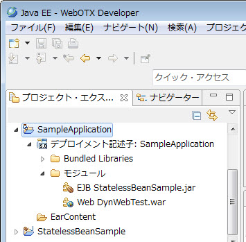 を例とした記載で、EJB と、動的Webアプリケーションを含む例です。