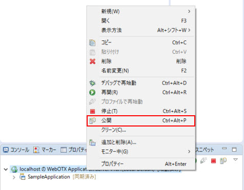 を選択します。これにより、配備するプロジェクトをWebOTXサーバーへ配備します。