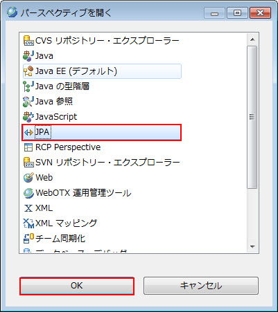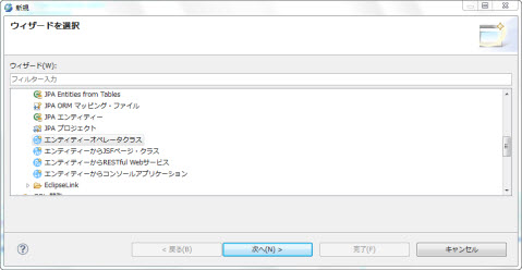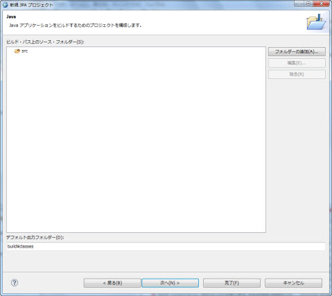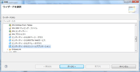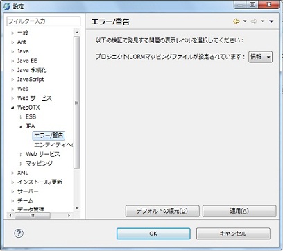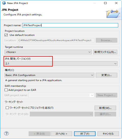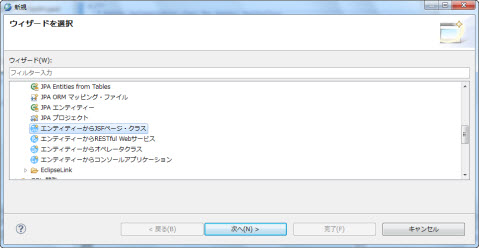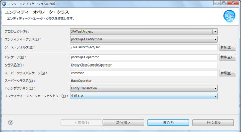 選択肢:workspace内のJPAプロジェクト デフォルト値:選択されたJPAプロジェクト |
