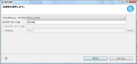 直接、DB接続情報を指定します。 トランザクション・タイプは リソース・ローカル が選択される 且 DB接続 が選択される場合、この項目は有効 |