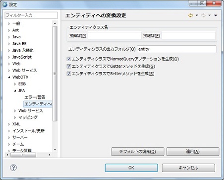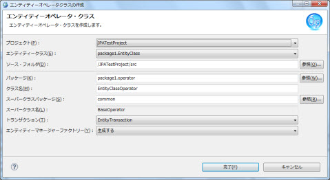 選択肢:プロジェクト内のエンティティークラス デフォルト値:選択されたエンティティークラス |