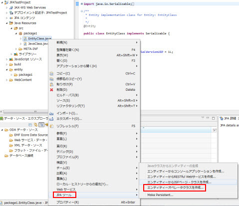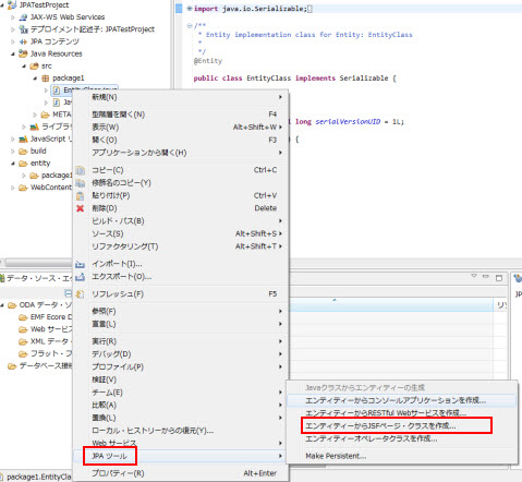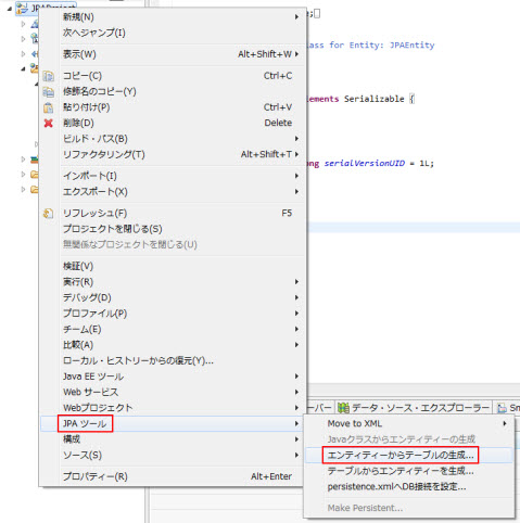 JPAプロジェクトを右クリックし、JPAツール >