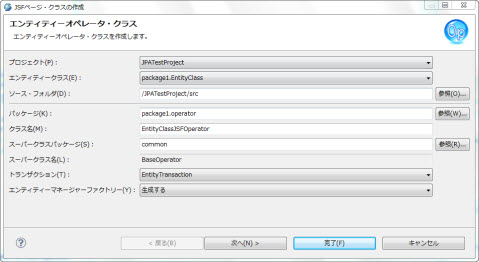 JSFページ・クラスを作成 ウィザードの場合、デフォルト値:{エンティティークラス名}JSFOperator