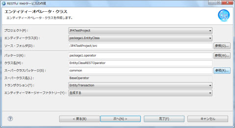 エンティティーオペレータクラスの作成 ウィザードの場合、デフォルト値:{エンティティークラス名}Operator