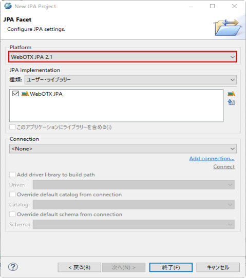 該当JPAプロジェクトでデータベースを接続していない場合、