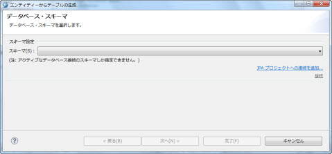 エンティティからテーブルの生成... をを選択すると、 データベース・スキーマ 画面が表示されます。