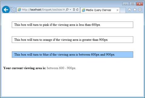 <div class="wrapper three">This box will turn to blue if the viewing area is between 600px and 900px</div>