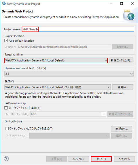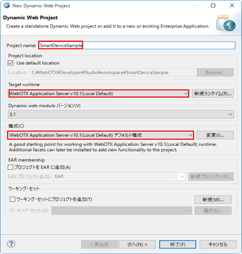 Studio での、Webアプリケーション作成用のプロジェクトです。