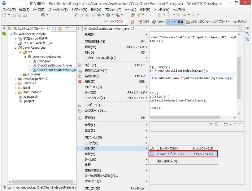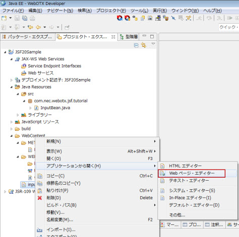 下図は、Java EEパスペクティブ(プロジェクト・エクスプローラー)の場合です。