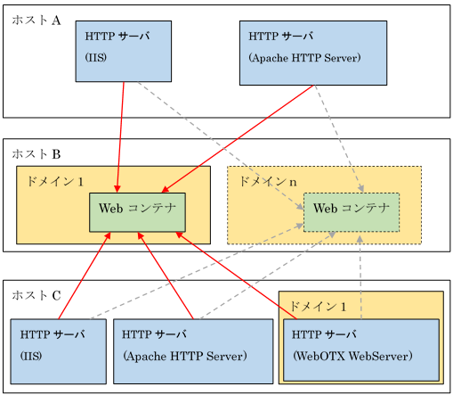 1 つは、Webコンテナが 1 つのJava 仮想マシン上で動作する機能構造で、もう 1 つは、