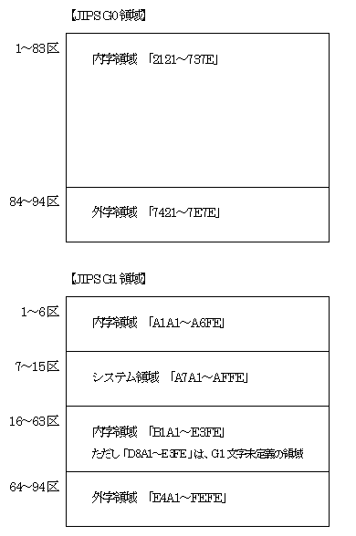 ただし、89〜92区、115〜119区の拡張文字の変換は、JIPS/JIPS(E)の場合は不正文字として扱います。