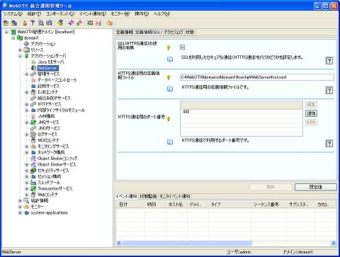 「<ドメイン名>」-「アプリケーションサーバ」-「WebServer」を選択し、