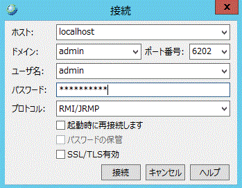 | ドメイン | ドメイン名。省略した場合は管理ドメインに接続します。 |