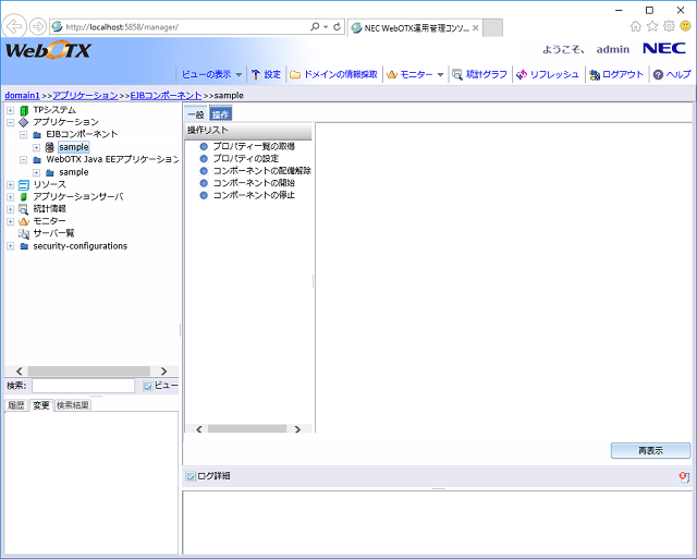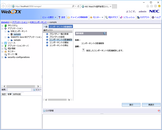運用管理コンソールを利用して、Java EEのアプリケーションを配備解除する手順を説明します。