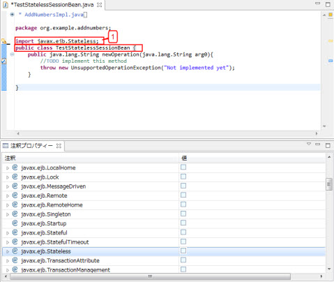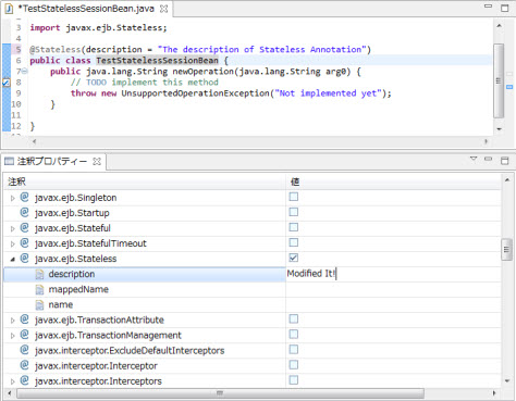 1.javax.ejb.TransactionAttributeやjavax.interceptor.InterceptorsなどTargetがType、Method両方であるアノテーションは、クラス名が選択された場合もメソッドが選択された場合も、一覧に表示されます。