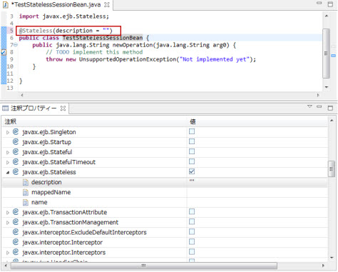 org.eclipse.persistence.annotations.TimeOfDayとjavax.servlet.annotation.HttpConstraintは注釈プロパティー・ビューで編集できませんが、エディタからの入力は可能です。
