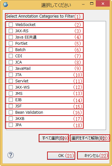 EE共通カテゴリに所属するアノテーションを注釈プロパティー・ビューで表示しないかどうかを指定します。 |