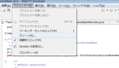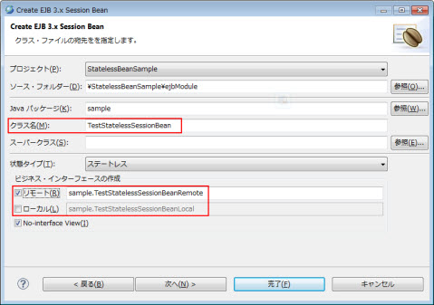 本節での手順は、ステートレスセッションBean の場合と、後述のステートフルセッションBean、SingletonセッションBean の場合とで、