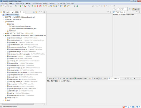 ステートフルやSingletonセッションBeanのチュートリアル実施時に、既にステートレスセッションBean のチュートリアルで作成した