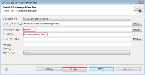 プロジェクトMessageDrivenBeanSampleが作成されます。