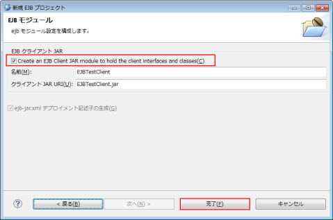 EJB モジュール画面で、ejb-jar.xmlデプロイメント記述子の生成 で ON