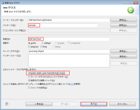 EJBTestMDClientプロジェクトにクライアント用クラスを作成します。