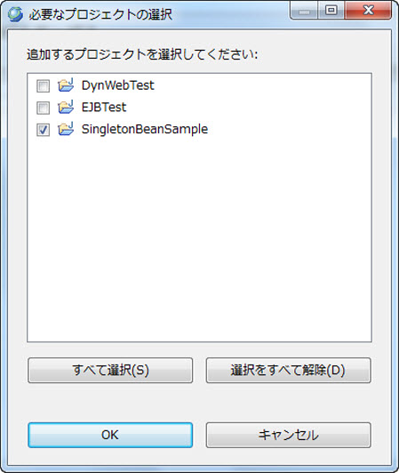・ Java EEモジュール依存関係での選択項目(DynWebTest, SingletonBeanSample)