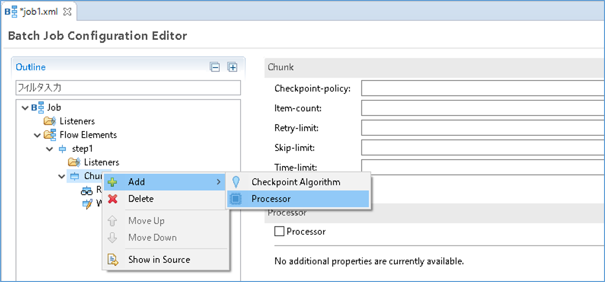 | Batch Job Configration Editor | ジョブ定義XMLファイル内の各種プロパティを参照及び編集するGUIツールです。 |