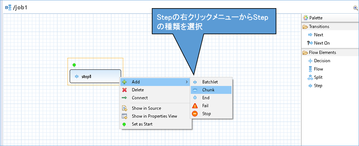 jBatchでは、実行することが可能なジョブステップとして下記2種類のステップを提供しています。