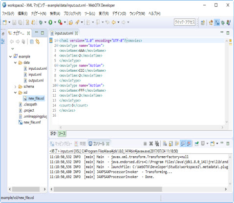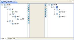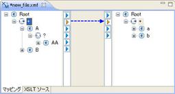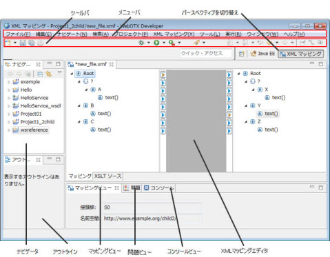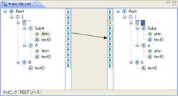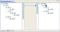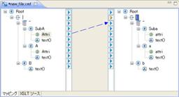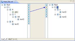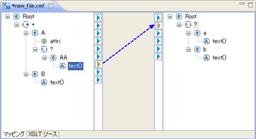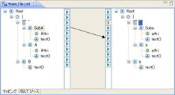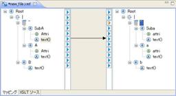 XMLマッピングは簡易にXMLからXMLへの変換を行うXSLスタイルシートを作成することを支援するためのツールです。SOAPなどのXMLメッセージの変換処理、XMLをインタフェースとする各種アダプタ向けXMLフォーマットにあわせるための変換処理などを記述することを目的とします。WebOTX Developerの中でのスムーズで一貫性の取れたユーザインタフェースを提供し、開発効率を高めることを目的とします。