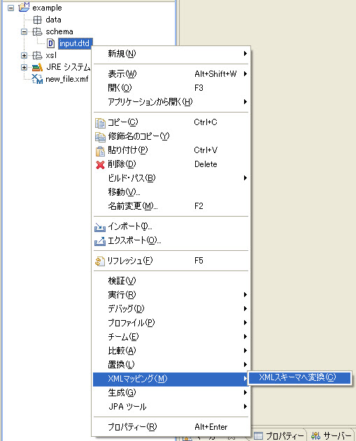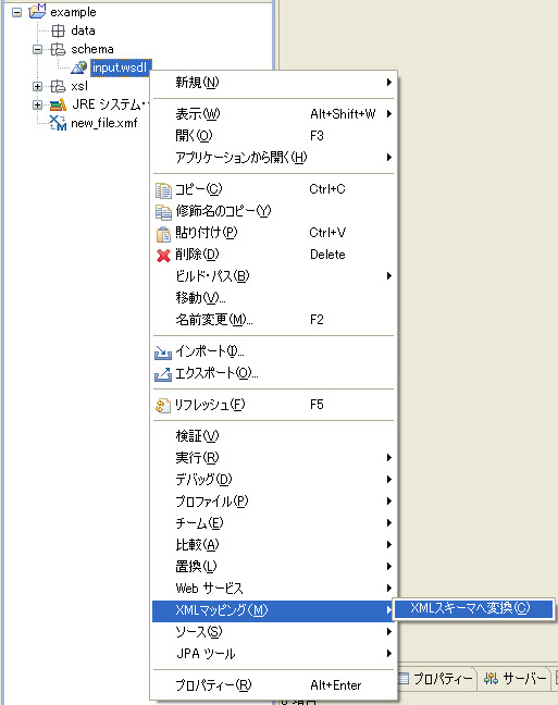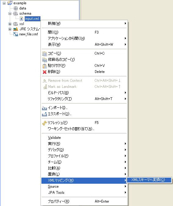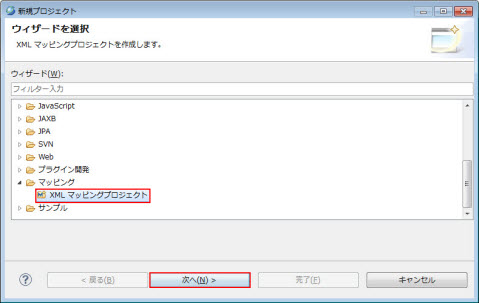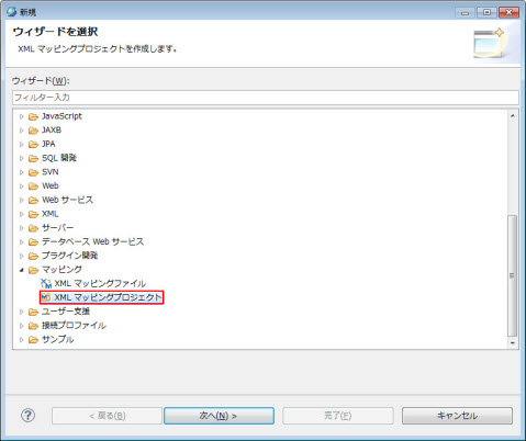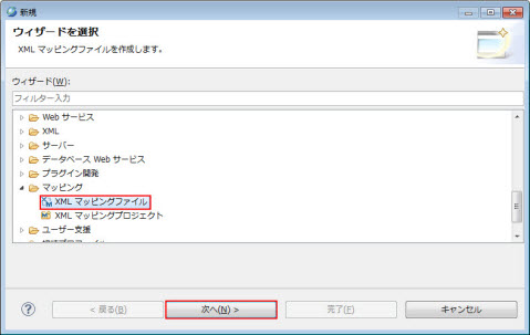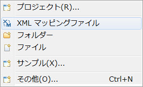 上記のダイアログで、マッピング > XMLマッピングファイル を選択、次へ を押クリック。あるいは、メニュー ファイル > 新規 を選択することでポップアップしたサブメニューで、