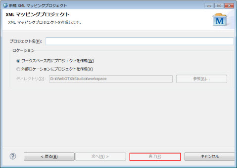 新規XMLマッピングファイルダイアログで、XMLマッピングファイル名 を入力します。