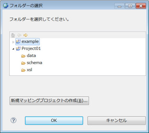 このダイアログで、XMLマッピングファイルのプロジェクトのフォルダからフォルダを選択できます。