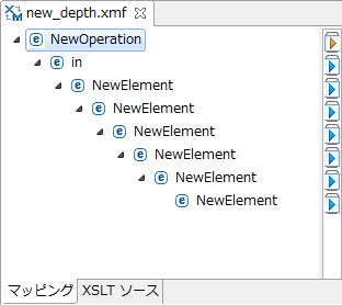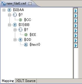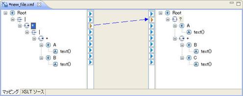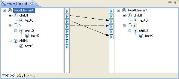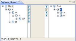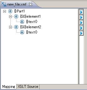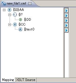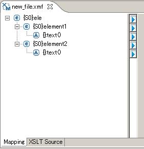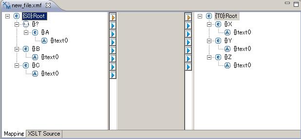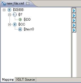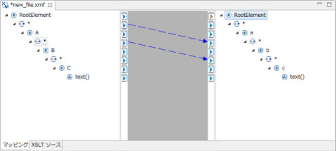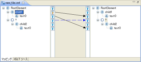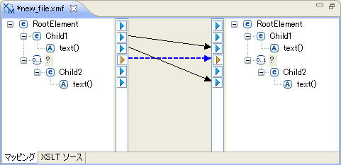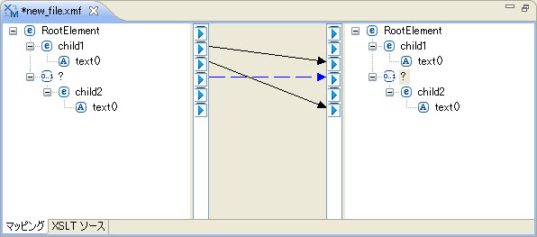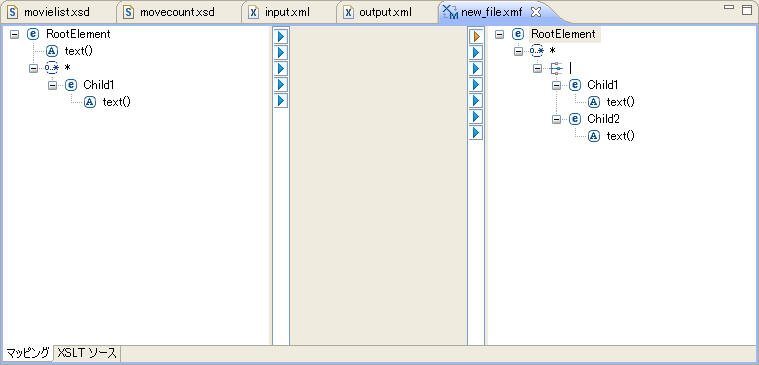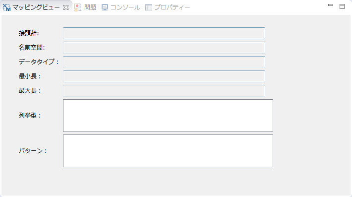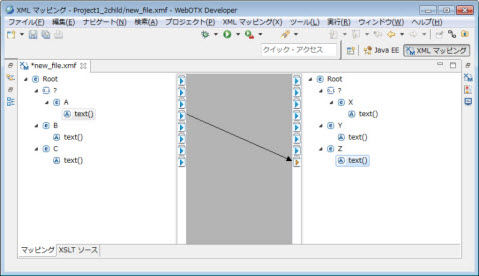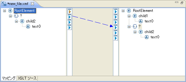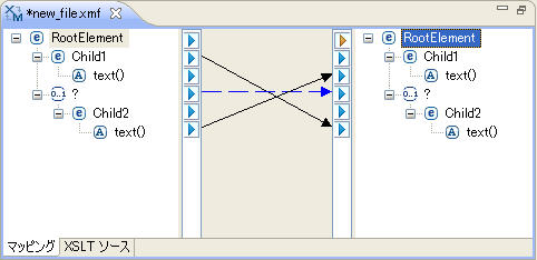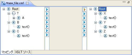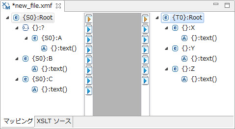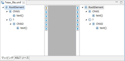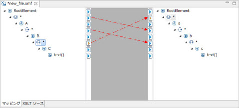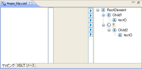 新規XMLマッピングファイル ダイアログで全ての内容を入力し終わった後、完了 をクリック。 XMLマッピングファイルが新たに作成され、XMLマッピングエディタが開きます。