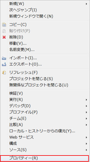 作成したプロジェクトで右クリックして、下図のような画面が表示されます。